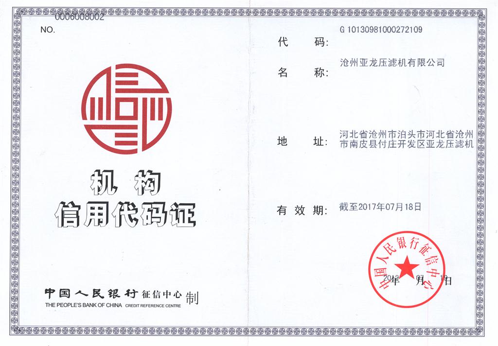 机构信用代码证