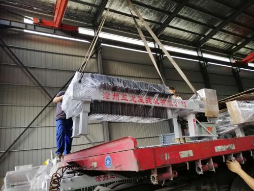 可能是隔膜压滤机进料压力过高造成喷料,许多用户在进料管路上不安装压力表,导致进料压力失控,终引起喷料。 将隔膜压滤机滤板压紧的顶紧力不够,进料压力升高后,滤板之间的作用力将滤板撑开造成喷料。.隔膜压滤机的滤板上有滤饼和其他杂物,压下滤板后总是有很大的间隙,所以滤饼取出后应清洗密封面,隔膜压滤机的滤板密盖已穿过凹槽,或滤板本身已损坏。