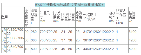 BYJ700铸铁板框压滤机(液压压紧 机械压紧) 单价:20000元整