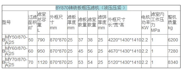BY870铸铁板框压滤机(液压压紧 )单价:42000元整