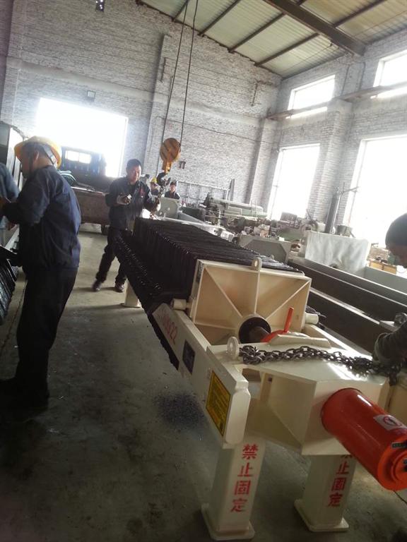 板框压滤机设备在行业使用中可以在滤板少于规定数量的情况厂开机工作,以免损坏机件。板框压滤机加料前检查滤板排列情况,滤布不能有折叠现象,防止发生_大渗漏;卸饼后滤板_要紧靠压紧排列整齐。进料畅通及滤板的密封性,从而相起因滤板两侧压力不平衡,导致滤板变形损坏。板框压滤机设备在进行浆料、洗液或压缩空气阀门,须按操作程序启用,不能同时启用,隔膜挤榨时压缩空气压力不能_过过滤压力。