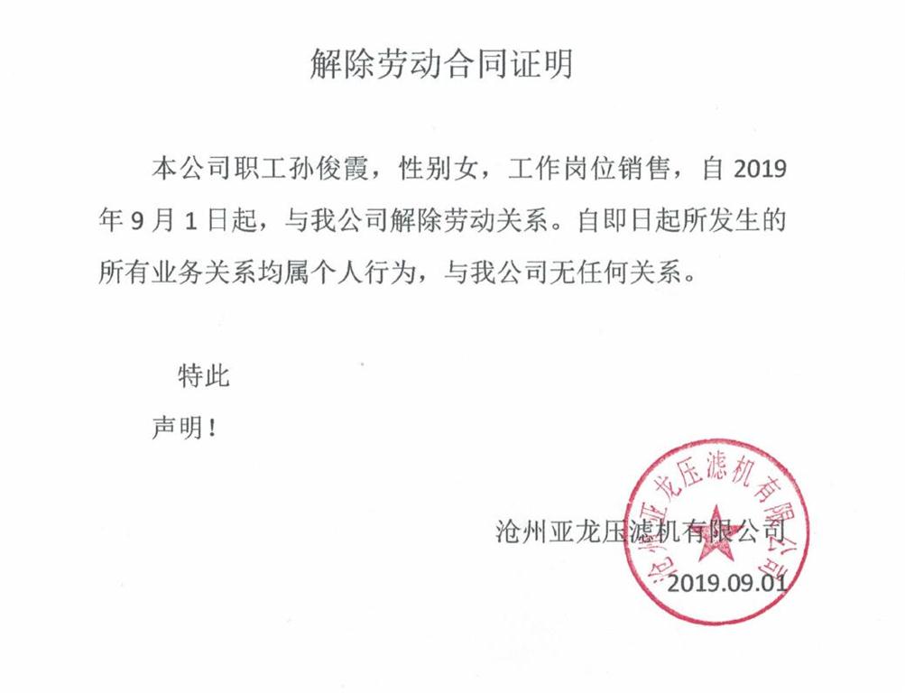 公司名称:沧州亚龙压滤机有限公司 公司地址:河北省南皮县付庄工业开发区 电话:0317-8189922 传真:0317-8189923 手机:13831723798 网址: